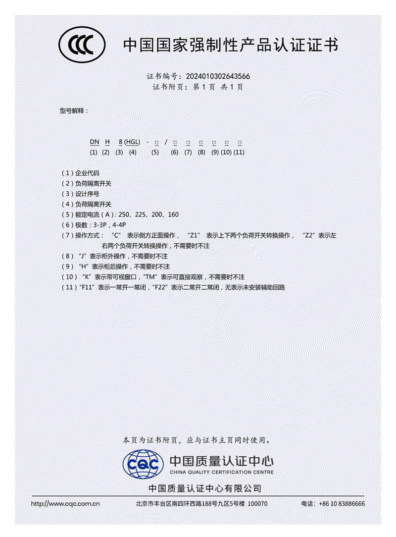 強(qiáng)制性認(rèn)證-DNH8(HGL)-250-??????